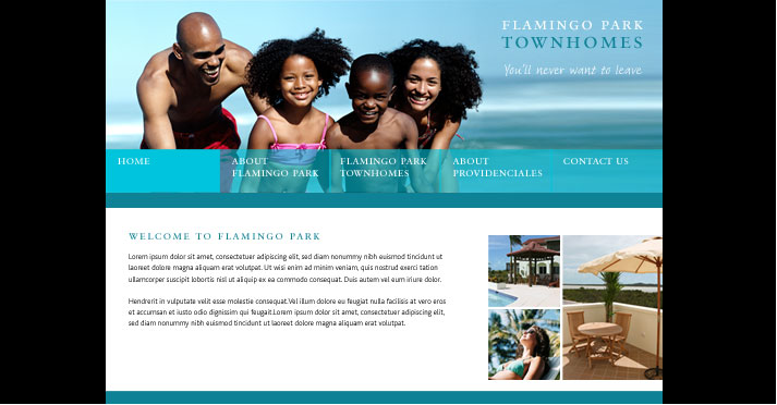 Project: Flamingo Park website | Client: KH Capital Following on from the identity, brochure and other publicity literature for property development Flamingo Park, we were asked to design their website. As with all the print material the site had to be consistent with the brand and appeal to the target market of families and young professionals. |